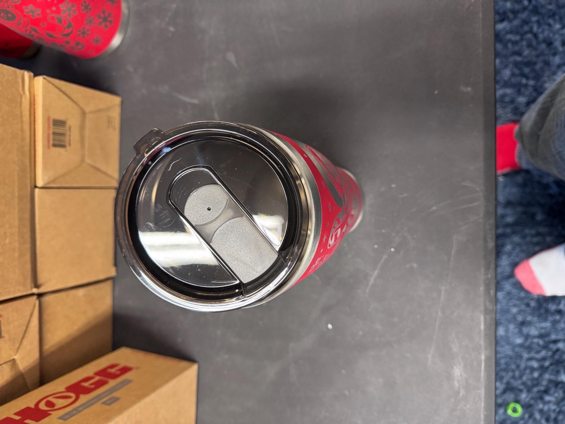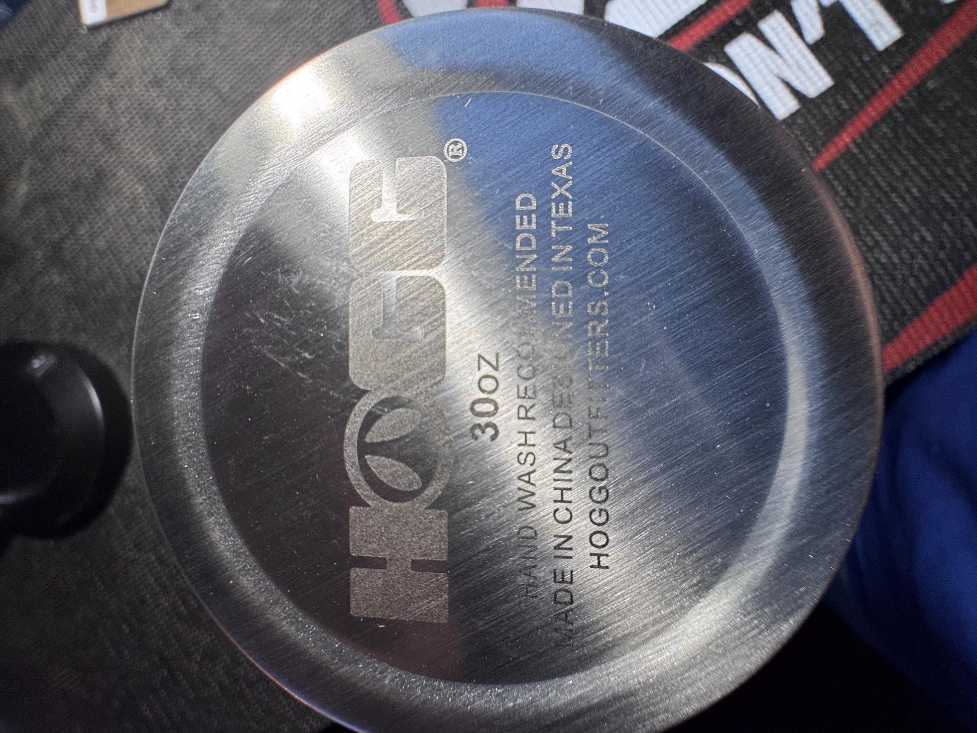 A 30oz Hogg tumbler is a double-wall, vacuum-insulated stainless steel cup — perfect for keeping drinks hot or cold. When laser-engraved, the laser removes the powder coating (if it’s a colored tumbler) to reveal the shiny stainless steel beneath, creating a beautiful silver-on-color contrast.