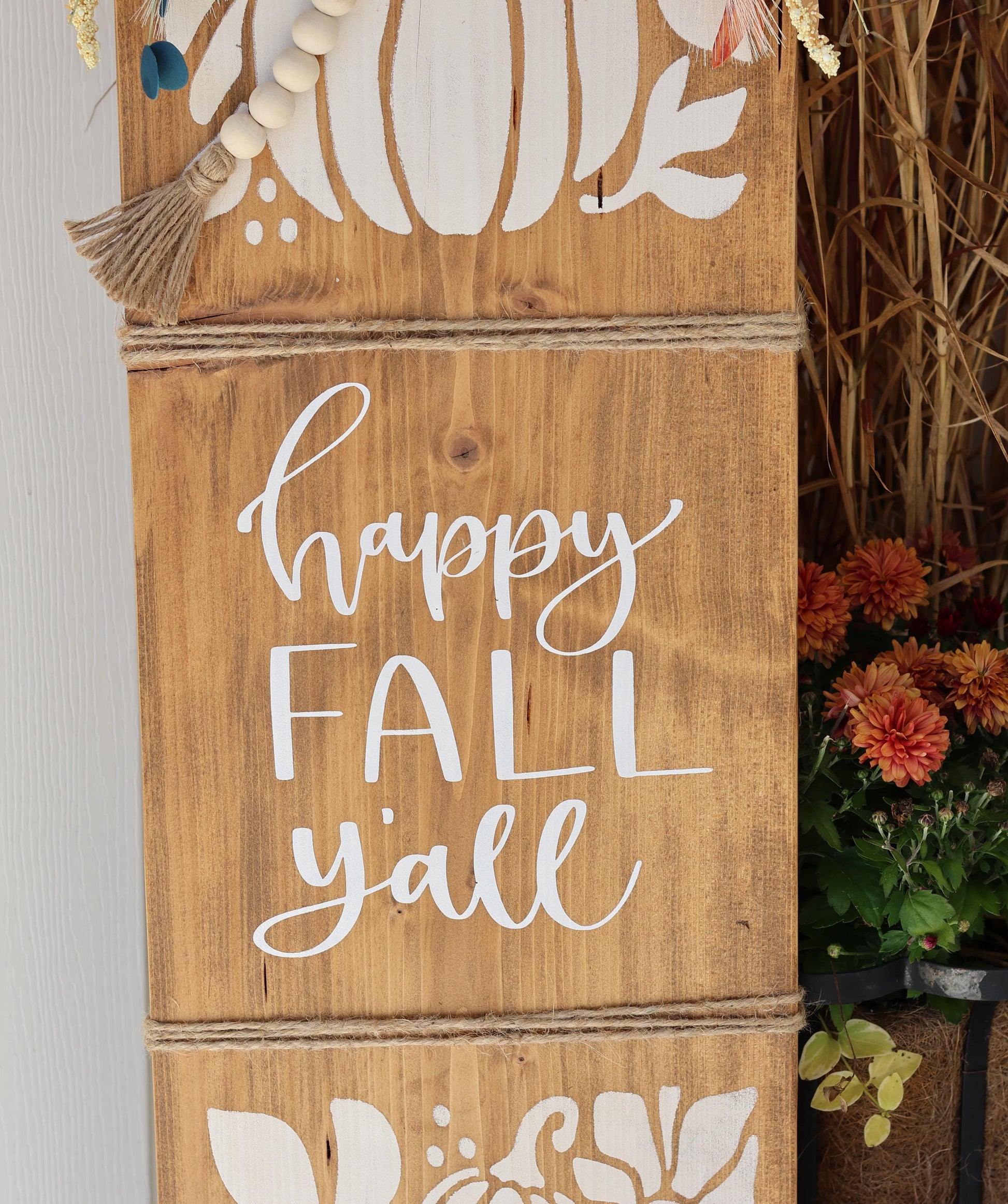 Bring a warm Southern welcome to your home this autumn with our Happy Fall Y’all porch leaner!