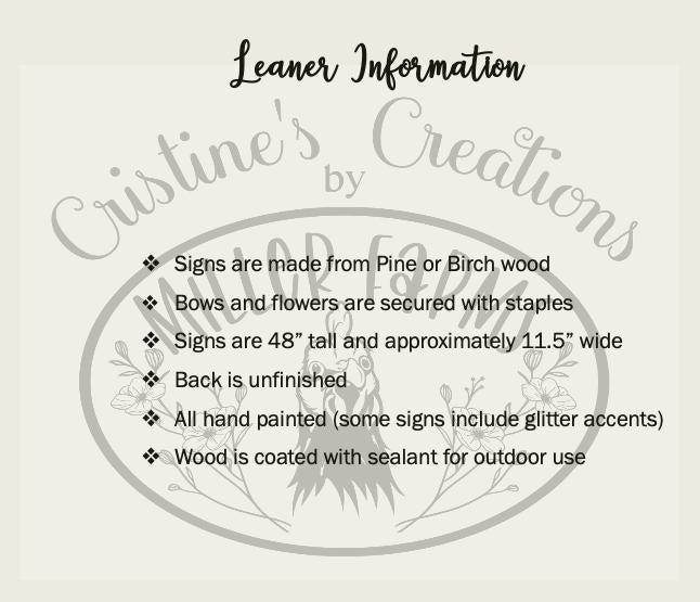 IMPORTANT INFORMATION: Signs are made from pine or birch wood. Each sign will vary and may have imperfections which add character making our signs unique. Signs are recommended for indoor or covered locations.